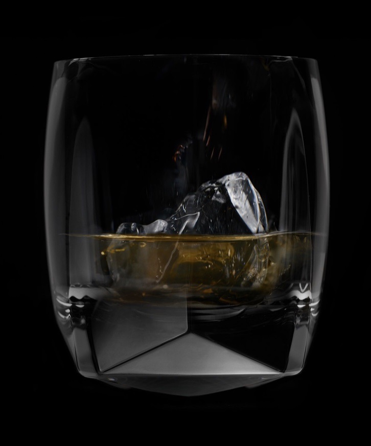 Circumventing the ornamentation of traditional cut crystal, the entire surface of the tumbler, inside and out, is born in a single blinding moment of machine-pressing the molten crystal into a complex five-part mold.”