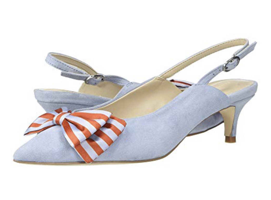 Same heel but in a floral print. I love to mix a floral print shoe with a striped outfit!