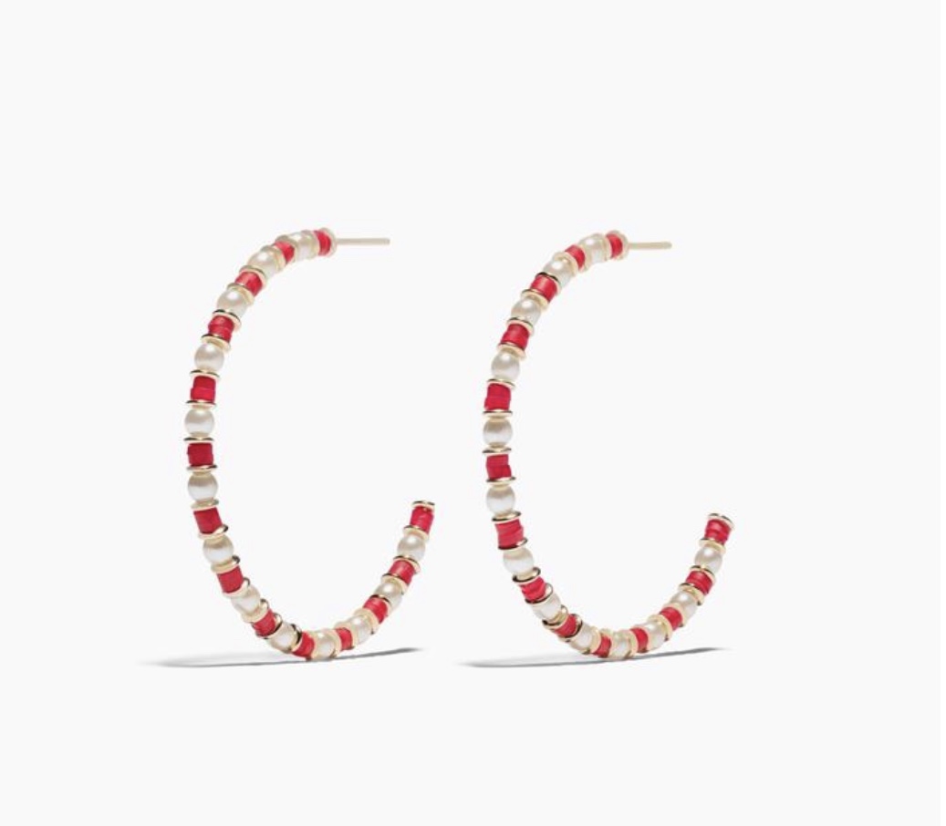 Same designer I love her pieces. I wore similar earrings of hers to a party. I like the crystal embellishment in the center. These are statement earrings and stand out but are very lightweight and comfortable to wear all day.