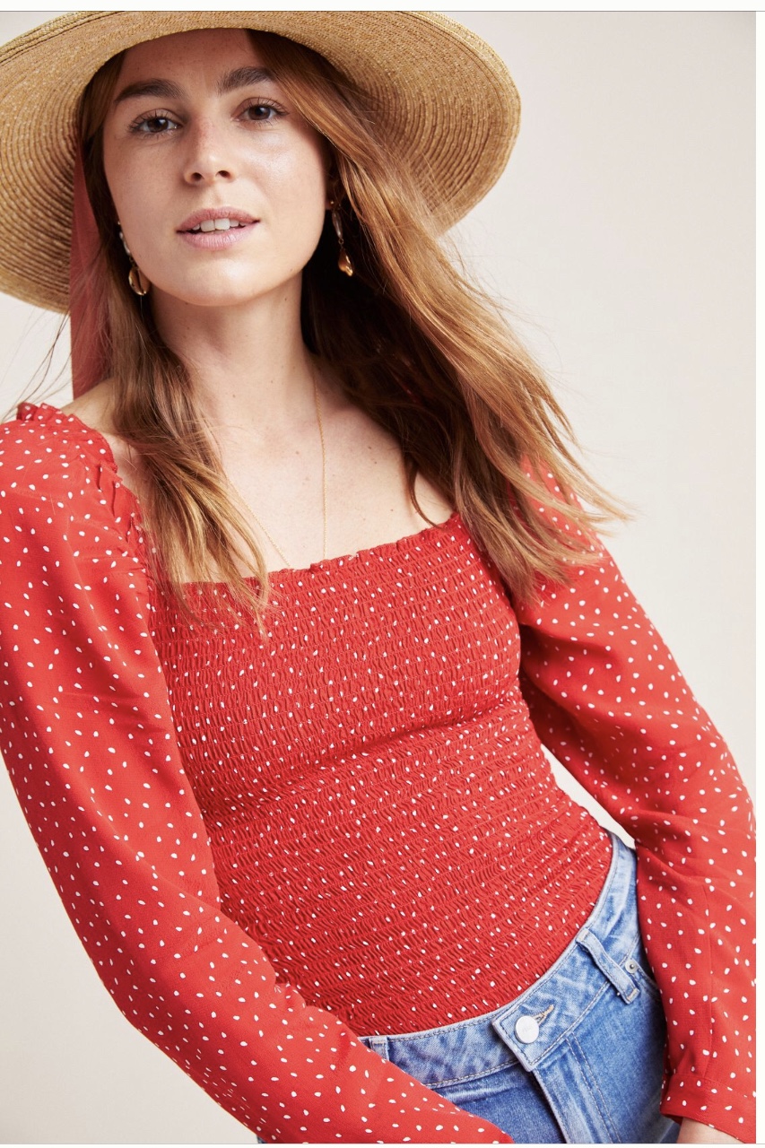 This is adorable paired with denim shorts. I love the polka dots and the slight puff detail on the sleeve.