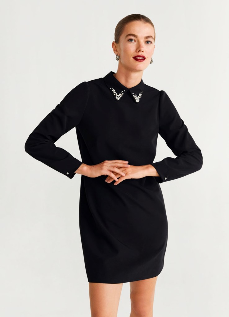 You can never go wrong with a little black dress! But jazz it up with a beaded collar. This dress is on sale at Mango for $56 šŸ™ŒšŸ»