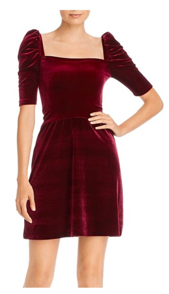 A velvet puff sleeve dress! On sale for $79! I am in love with the rich burgundy hue.