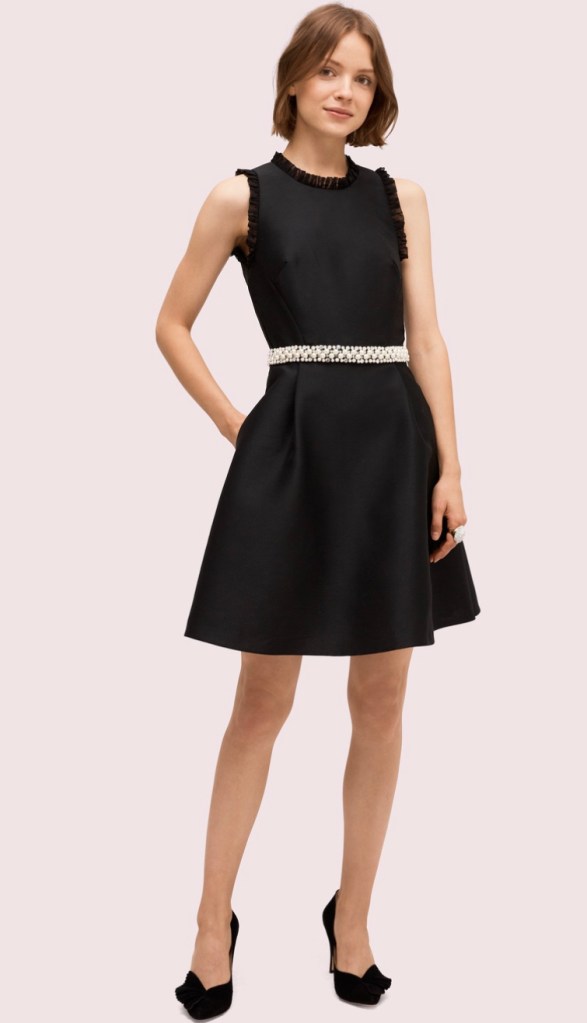 A fit and flare dress that you could wear all year round! The ruffle sleeve and neck details and the embellished waist add such a polished look. Modern Audrey Hepburn!